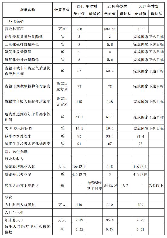 附件:河南省2017年国民经济和社会发展计划主要指标